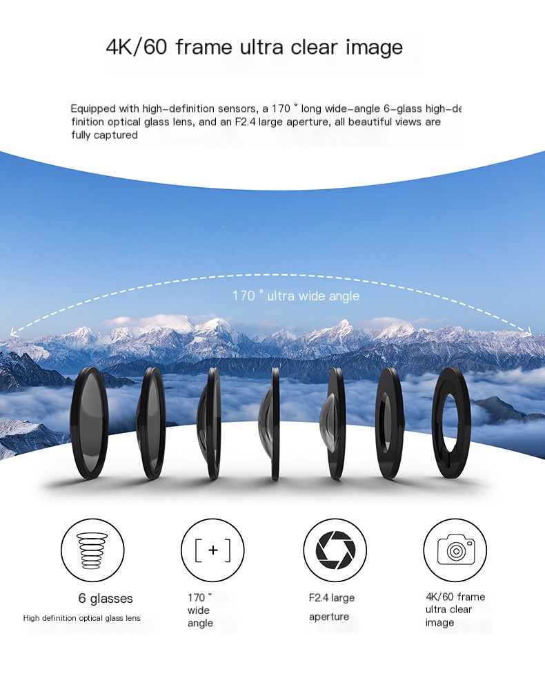 High Definition Footage: Experience breathtaking 4K video quality that ensures every detail is captured, whether you're surfing, skiing, or diving.